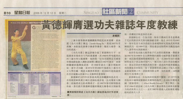 February 2007 - Singtao Newspaper Article